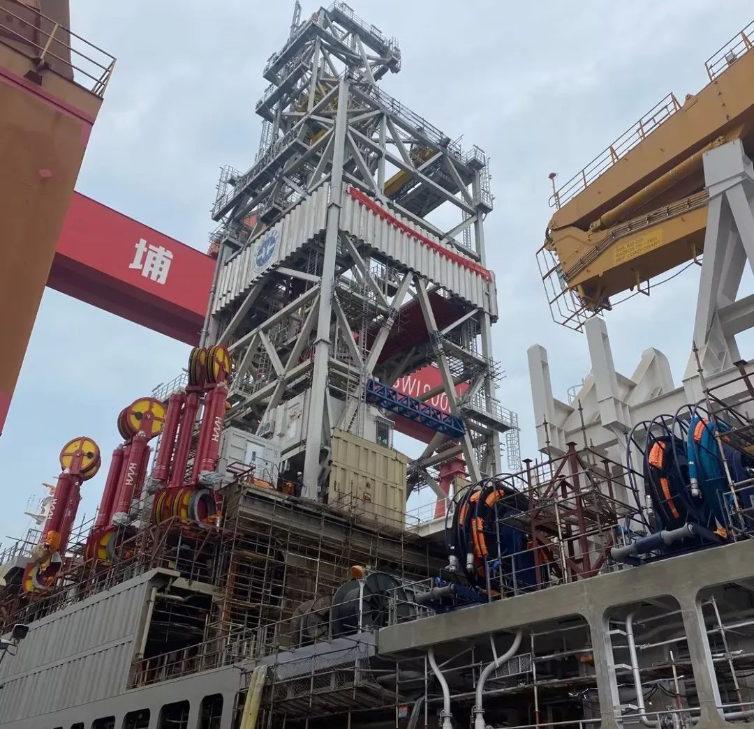 此外,東方宏華還建造了“夢想”號海洋動態(tài)井架和水下設(shè)備移運系統(tǒng),攻克復雜桁架的節(jié)點設(shè)計技術(shù)及大型鋼構(gòu)精度控制技術(shù),井架一次性吊裝到位,掌握了創(chuàng)新型動態(tài)井架的設(shè)計建造能力。