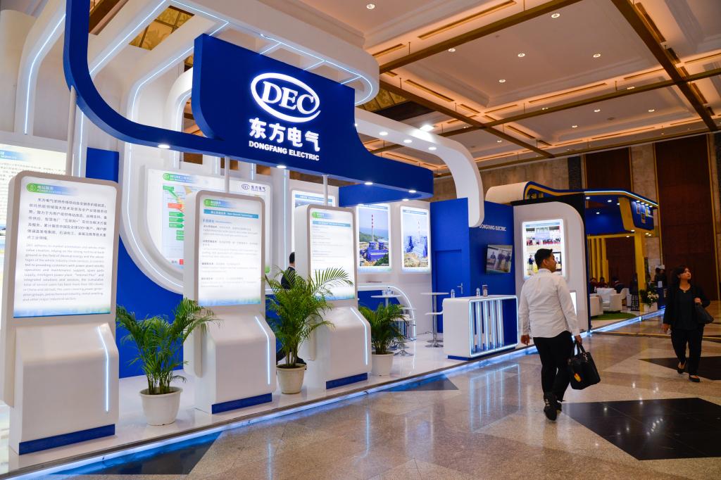 11月21日在印度尼西亞雅加達(dá)會(huì)議中心拍攝的印度尼西亞國(guó)際電力展覽會(huì)東方電氣展臺(tái)。新華社記者 徐欽 攝