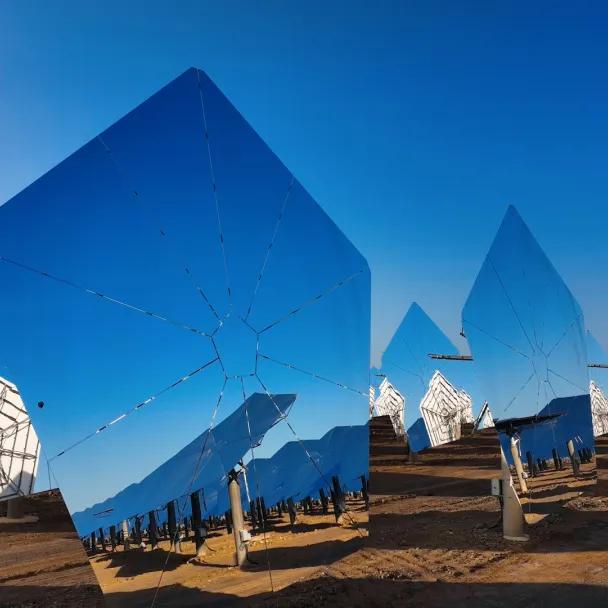茫茫戈壁,百米高塔巍然聳立,萬(wàn)余面定日鏡“逐日”而動(dòng),猶如一朵巨大的“銀色向日葵”。這朵“向日葵”由行業(yè)首創(chuàng)的14500面正五邊形定日鏡構(gòu)成,正在服務(wù)于國(guó)家首批太陽(yáng)能熱發(fā)電示范項(xiàng)目、新疆首個(gè)光熱發(fā)電站——新疆哈密50兆瓦熔鹽塔式光熱發(fā)電項(xiàng)目。該項(xiàng)目每年貢獻(xiàn)近2億度清潔電能,為新疆綠色低碳發(fā)展帶來(lái)更多可能。