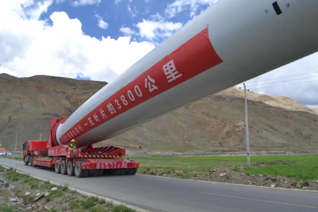 一波未平,一波又起。7月5日下午4時許,車隊抵達那曲路段,韓婷婷接到頭車司機電話,“因近期西藏大雨,原先規(guī)劃的運輸路段遇到道路修復施工,繞道則需耗費大量時間,葉片很可能無法按期駛入高速運輸”。得知突發(fā)狀況,東方鏢師團隊立即與當地交警部門取得聯(lián)系,詳細說明情況并請求協(xié)助。地方交警部門迅速啟動應急響應機制,調派了清障車和人力前往現場,對葉片運輸保障提供了有力支持。