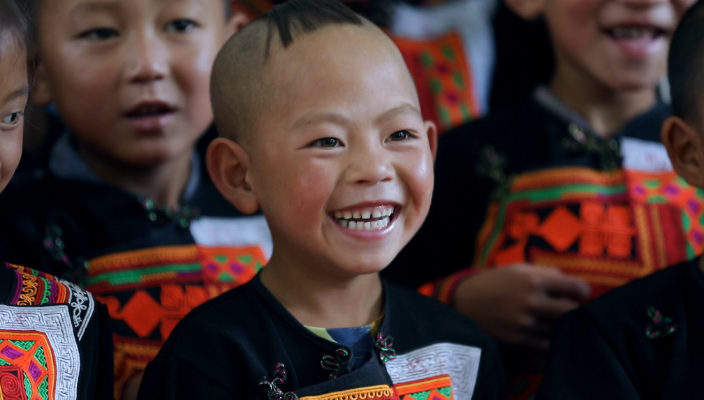 彝族小朋友在東方電氣集團(tuán)捐建的幼教點(diǎn)學(xué)習(xí)普通話