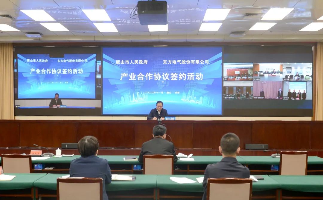 在俞培根、武衛(wèi)東等領(lǐng)導(dǎo)見證下,東方電氣股份有限公司與唐山市人民政府通過云簽約方式簽署產(chǎn)業(yè)合作協(xié)議。張彥軍、郝志軍代表雙方簽字。