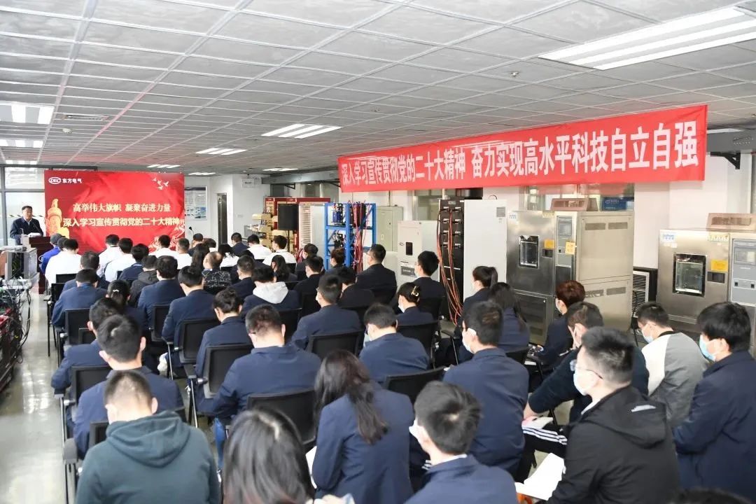 為引導全集團廣大干部職工切實把思想和行動統(tǒng)一到黨的二十大精神上來,根據(jù)東方電氣集團黨組統(tǒng)一部署,11月22日,集團公司“高舉偉大旗幟 凝聚奮進力量”黨的二十大精神宣講隊首場宣講報告會在東方研究院新能源電池測試實驗室舉行,用“行走的課堂”講述“我們身邊”拼搏奮進爭先的鮮活故事,激勵科研工作者以實干搶抓創(chuàng)新先機,為加快實現(xiàn)高水平科技自立自強貢獻“東方”力量。