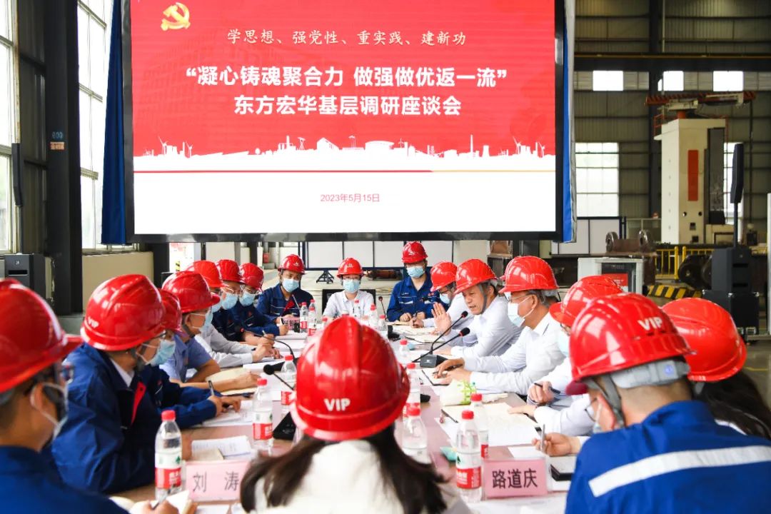 本網(wǎng)訊 5月15日,在出席東方電氣集團(tuán)2023年“學(xué)思想、爭(zhēng)先鋒、謀發(fā)展、建新功”群眾性主題宣傳教育活動(dòng)啟動(dòng)會(huì)后,集團(tuán)公司黨組書(shū)記、董事長(zhǎng)俞培根深入東方宏華,圍繞“凝心鑄魂聚合力,做強(qiáng)做優(yōu)返一流”主題,開(kāi)展主題教育專題調(diào)研。集團(tuán)公司領(lǐng)導(dǎo)宋致遠(yuǎn)、孫國(guó)君、張彥軍、李忠軍一同調(diào)研。