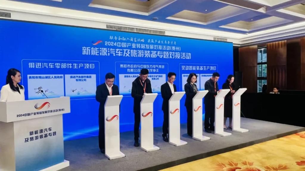 2024中國(guó)產(chǎn)業(yè)轉(zhuǎn)移發(fā)展對(duì)接活動(dòng)(貴州)以“服務(wù)和融入國(guó)家戰(zhàn)略 共贏產(chǎn)業(yè)發(fā)展新未來(lái)”為主題,包括1場(chǎng)綜合活動(dòng)和4場(chǎng)專題活動(dòng),圍繞資源精深加工及綜合利用、先進(jìn)裝備制造、大數(shù)據(jù)電子信息、特色輕工等貴州特色優(yōu)勢(shì)產(chǎn)業(yè),開(kāi)展地市推介、政企對(duì)接、實(shí)地考察、專家解讀、項(xiàng)目簽約等。在新能源汽車及旅游裝備專題對(duì)接活動(dòng)中,東方電氣集團(tuán)與貴陽(yáng)市人民政府簽署了戰(zhàn)略合作框架協(xié)議。