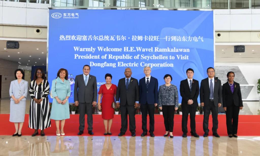 本網訊 9月6日,塞舌爾總統(tǒng)拉姆卡拉旺及夫人一行到東方電氣集團參觀考察,受到集團公司總經理、黨組副書記張彥軍的熱情接待。中國駐塞舌爾大使林楠陪同考察。股份公司副總裁李建華參加接待。