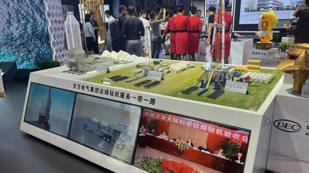 展會期間,東方電氣高端鉆機、高效水輪機等硬核產(chǎn)品模型驚喜亮相,展示了東方電氣“六電六業(yè)”的綠色低碳產(chǎn)業(yè)布局、產(chǎn)品出口和綜合服務貿(mào)易,吸引了眾多參觀者駐足觀看,展示了中央企業(yè)在服務全球、推動全球能源綠色低碳轉(zhuǎn)型中的積極作用。