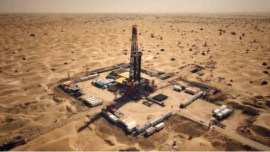 “地殼一號(hào)”萬(wàn)米科研鉆機(jī)綜合技術(shù)水平達(dá)到國(guó)際先進(jìn)水平,填補(bǔ)了國(guó)內(nèi)空白,成為國(guó)際上第一口鉆穿白堊紀(jì)陸相地層的科學(xué)探井。圖為2024年10月,“地殼一號(hào)”萬(wàn)米鉆機(jī)在新疆塔克拉瑪干沙漠里工作。