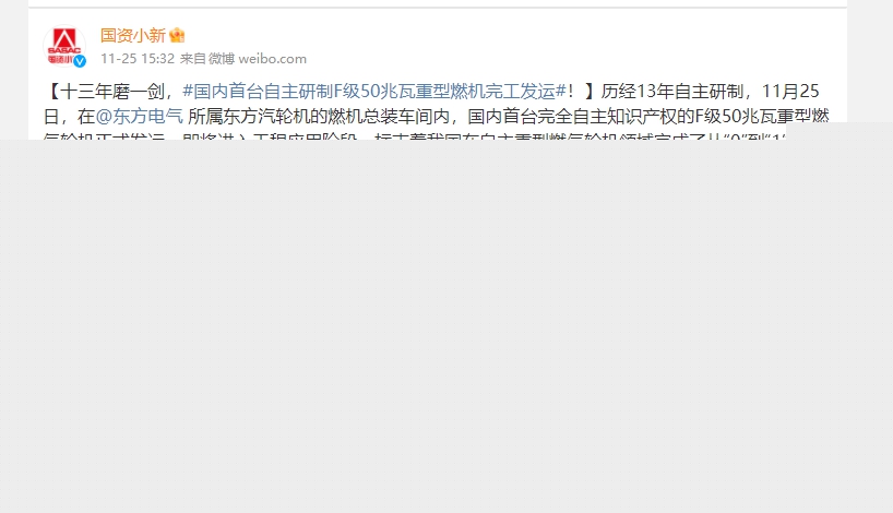 【十三年磨一劍,#國(guó)內(nèi)首臺(tái)自主研制F級(jí)50兆瓦重型燃機(jī)完工發(fā)運(yùn)#!】歷經(jīng)13年自主研制,11月25日,在@東方電氣所屬東方汽輪機(jī)的燃機(jī)總裝車(chē)間內(nèi),國(guó)內(nèi)首臺(tái)完全自主知識(shí)產(chǎn)權(quán)的F級(jí)50兆瓦重型燃?xì)廨啓C(jī)正式發(fā)運(yùn),即將進(jìn)入工程應(yīng)用階段,標(biāo)志著我國(guó)在自主重型燃?xì)廨啓C(jī)領(lǐng)域完成了從“0”到“1”的突破。燃?xì)廨啓C(jī)是極其復(fù)雜的清潔能源發(fā)電設(shè)備,F(xiàn)級(jí)50兆瓦重型燃?xì)廨啓C(jī)整機(jī)由20000多個(gè)零件組成,相較于同功率的火力發(fā)電機(jī)組,其一年可減少碳排放超過(guò)50萬(wàn)噸,聯(lián)合循環(huán)一小時(shí)發(fā)電量超過(guò)七萬(wàn)千瓦時(shí)。