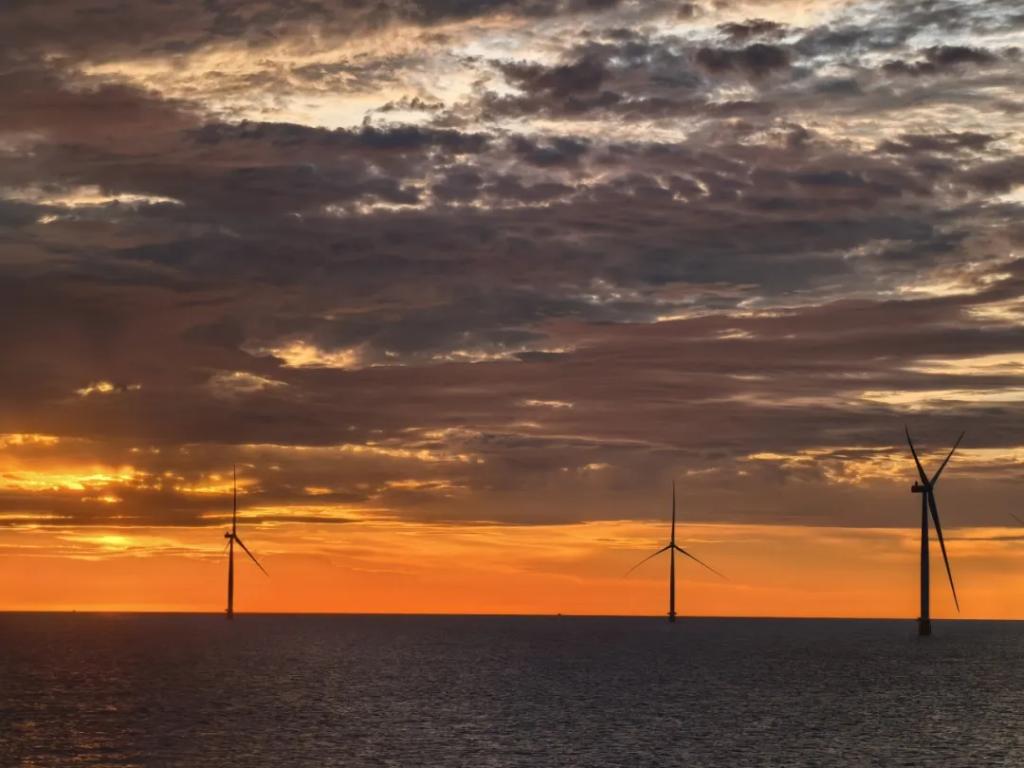 ▲9月9日,三峽新能源廣東省陽江市陽西沙扒四期項目現(xiàn)場,東方電氣研制供貨的43臺7兆瓦海上風機正常運轉。