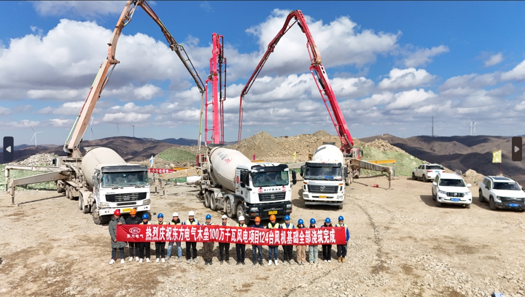 近日,隨著全場(chǎng)施工難度最大的E092風(fēng)機(jī)基礎(chǔ)最后一方混凝土澆筑完畢,東方電氣木壘100萬(wàn)千瓦風(fēng)電項(xiàng)目完成124臺(tái)風(fēng)機(jī)基礎(chǔ)澆筑,標(biāo)志著項(xiàng)目土建工作全面完成,主體工程全面進(jìn)入設(shè)備安裝沖刺階段,為年內(nèi)建成奠定了堅(jiān)實(shí)的基礎(chǔ)。