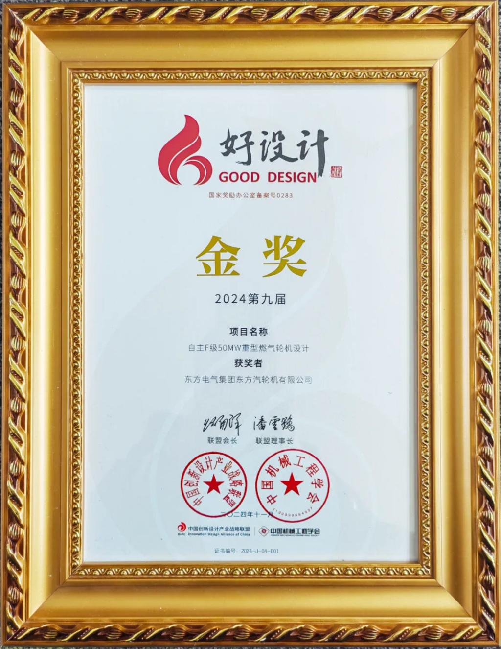 11月18日至19日,2024中國(guó)創(chuàng)新設(shè)計(jì)活動(dòng)周暨第九屆好設(shè)計(jì)頒獎(jiǎng)大會(huì)在浙江省召開(kāi)。在中國(guó)創(chuàng)新設(shè)計(jì)產(chǎn)業(yè)戰(zhàn)略聯(lián)盟副會(huì)長(zhǎng)兼理事長(zhǎng)、中國(guó)工程院院士潘云鶴等10位院士的共同見(jiàn)證下,東方電氣集團(tuán)所屬東方汽輪機(jī)申報(bào)的《自主F級(jí)50MW重型燃?xì)廨啓C(jī)設(shè)計(jì)》獲得2024好設(shè)計(jì)金獎(jiǎng)。好設(shè)計(jì)獎(jiǎng)是唯一的國(guó)家級(jí)設(shè)計(jì)創(chuàng)新專(zhuān)項(xiàng)獎(jiǎng),代表了我國(guó)設(shè)計(jì)創(chuàng)新發(fā)展趨勢(shì)。