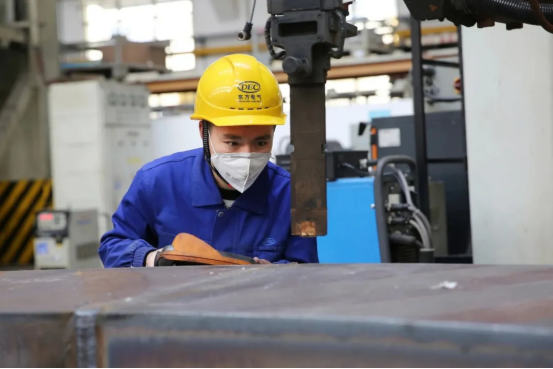在白鶴灘水電機組焊接過程中,秦建和工藝人員反復試驗,最終成功攻克弧焊機器人超厚板焊接質(zhì)量不穩(wěn)定、焊接變形控制等難題,將焊接探傷合格率從96%提升到了99%,有效保證了產(chǎn)品質(zhì)量和交付進度,也將自己鍛煉成為一名高技能現(xiàn)代產(chǎn)業(yè)工人。