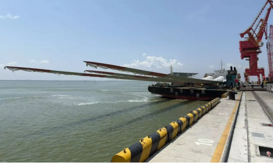 單支長度達(dá)153米的“葉片長龍”,長度堪比4架C919客機首尾相接,運輸難度極高。從工廠到港口的運輸路線如“障礙賽”,高壓線、橋梁、急彎層層阻隔,發(fā)運團隊提前半年實地勘測,多次復(fù)勘定制“分段式護送”方案。