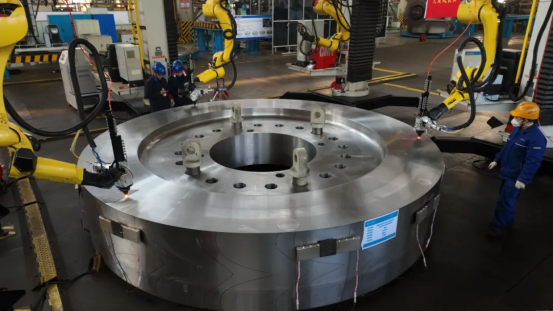 近年來,針對大型沖擊式轉(zhuǎn)輪研制,東方電機開發(fā)了智能化增材制造(3D打?。⒆詣踊瘮?shù)控加工、機器人焊接、機器人打磨、機器人三維掃描等技術(shù)。本次通過驗證的轉(zhuǎn)輪直徑6.2米,整體重量達到90噸,95%以上制造過程實現(xiàn)了數(shù)字化、智能化。