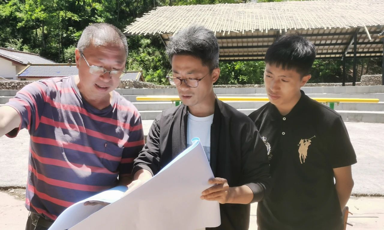 東方電氣集團(tuán)派駐昭覺(jué)縣特布洛村駐村第一書(shū)記肖飛與幫扶工作小組隊(duì)員一起研究村容村貌升級(jí)改造