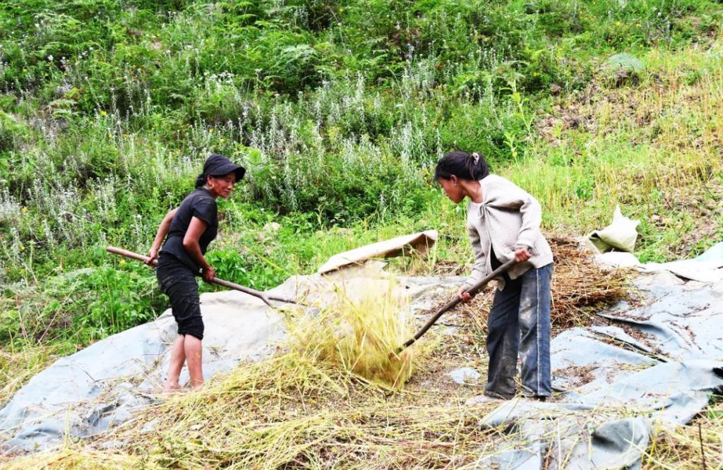 大哥名叫洛比吉莫,當天凌晨3點,他們一家三口便帶著干糧來到田里,開始割蕎。原來,收蕎的時間是非常講究的,割蕎必須在上午10點前完成,而打蕎則要在10點以后,讓太陽把蕎堆曬干,打起來省力?!敖衲晡覀兗曳N了5畝苦蕎,留足家里吃的,剩下的都能賣到苦蕎加工廠。”洛比吉莫一邊擦拭著汗水一邊說道。