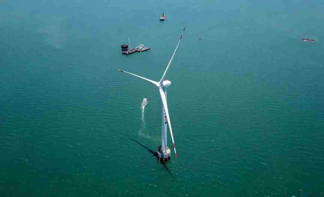 隨著福建省委常委、福州市委書記林寶金,省委常委、副省長郭寧寧,東方電氣集團(tuán)黨組書記、董事長俞培根,總經(jīng)理、黨組副書記徐鵬等領(lǐng)導(dǎo)共同啟動運(yùn)行指令,安放在試驗(yàn)平臺的風(fēng)電主機(jī)開始徐徐轉(zhuǎn)動,額定功率穩(wěn)定加載至13兆瓦,標(biāo)志著東方電氣13兆瓦海上風(fēng)電機(jī)組成功下線。