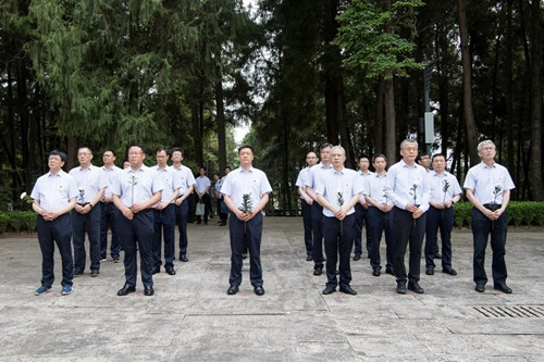你曾熱血染紅大地,那是為了今天的美麗;你沖破昨天的戰(zhàn)火硝煙,那是為了今天幸福的笑語。前往長眠著兩萬五千多名紅軍英烈的川陜革命根據(jù)地紅軍烈士陵園,俞培根一行整齊肅立,瞻仰了紅四方面軍英勇烈士紀念碑、鐵血丹心主題雕塑、紅軍烈士集墓、川陜蘇區(qū)紀念館等地,向長埋青山的忠骨英魂獻花默哀致敬。