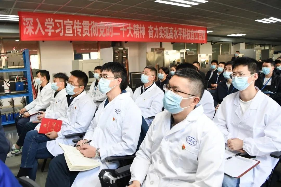 為引導全集團廣大干部職工切實把思想和行動統(tǒng)一到黨的二十大精神上來,根據(jù)東方電氣集團黨組統(tǒng)一部署,11月22日,集團公司“高舉偉大旗幟 凝聚奮進力量”黨的二十大精神宣講隊首場宣講報告會在東方研究院新能源電池測試實驗室舉行,用“行走的課堂”講述“我們身邊”拼搏奮進爭先的鮮活故事,激勵科研工作者以實干搶抓創(chuàng)新先機,為加快實現(xiàn)高水平科技自立自強貢獻“東方”力量。