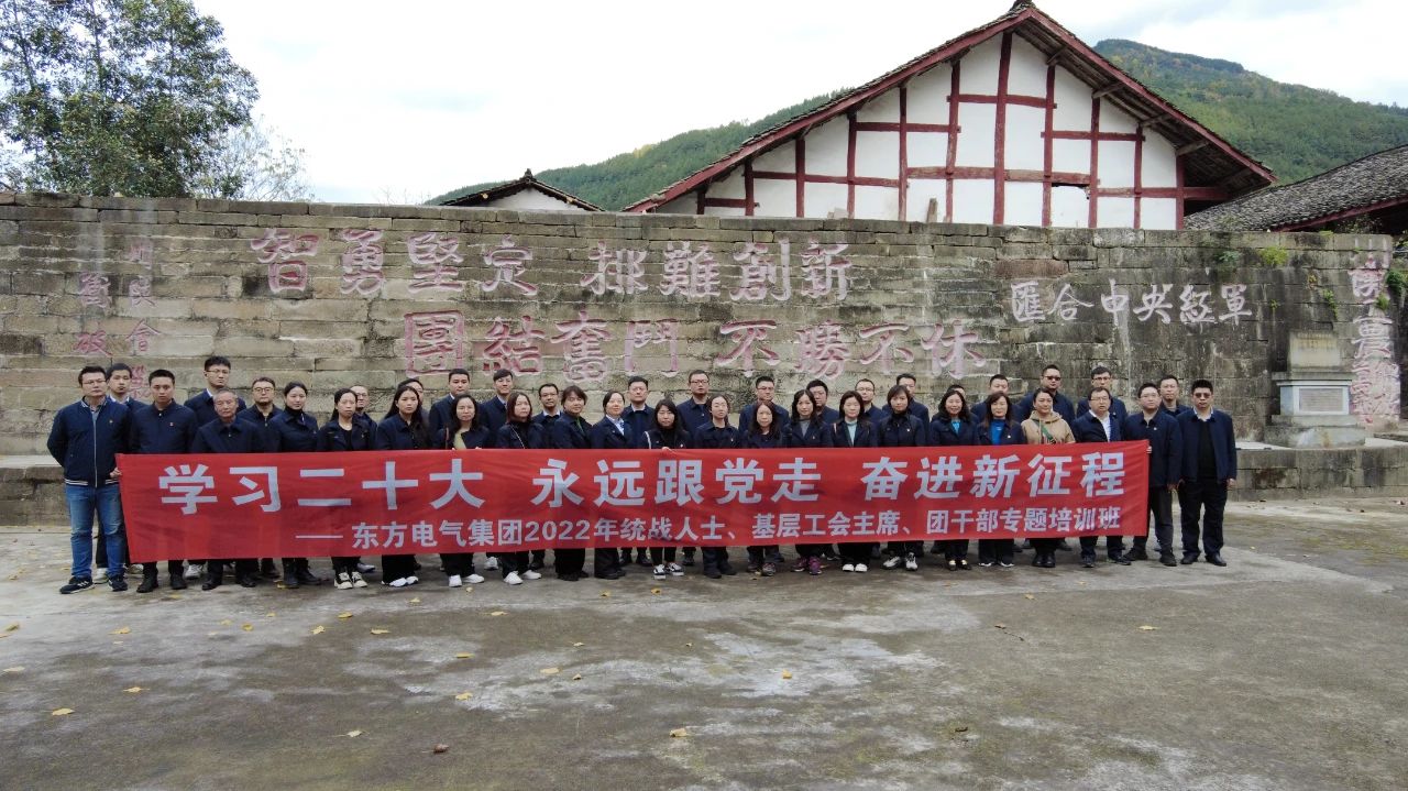 為推動學習宣傳貫徹黨的二十大精神不斷走向深入,近日,東方電氣集團統(tǒng)戰(zhàn)人士、基層工會主席、團干部“學習二十大、永遠跟黨走、奮進新征程”專題學習班在四川大巴山干部學院舉行。學員們賡續(xù)紅色血脈、傳承奮斗精神,向著新的奮斗目標,出發(fā)!