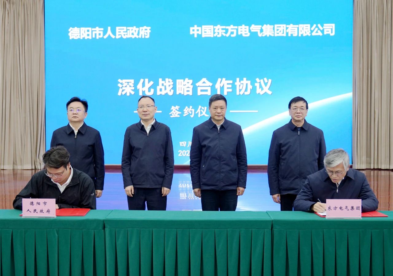 俞培根、李文清等領(lǐng)導(dǎo)共同見證了簽約儀式。簽約儀式分兩輪進(jìn)行,第一輪中國(guó)東方電氣集團(tuán)有限公司與德陽市人民政府簽署《深化戰(zhàn)略合作協(xié)議》;第二輪東方電氣風(fēng)電股份有限公司與德陽發(fā)展控股集團(tuán)有限公司簽署《戰(zhàn)略合作協(xié)議》。根據(jù)協(xié)議內(nèi)容,雙方將發(fā)揮各自資源優(yōu)勢(shì),共同推動(dòng)?xùn)|方電氣集團(tuán)在德陽布局和發(fā)展更多產(chǎn)業(yè),助力德陽加快建設(shè)世界級(jí)清潔能源裝備制造基地。