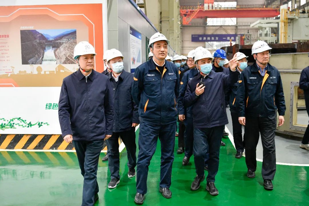 董保同一行先后走訪了東方電機(jī)大型清潔能源裝備重型制造數(shù)字化車間、特電新車間、東方法馬通主泵生產(chǎn)車間、東方汽輪機(jī)控制棒驅(qū)動(dòng)機(jī)構(gòu)生產(chǎn)車間和葉片加工無(wú)人車間,深入了解了企業(yè)核安全設(shè)備生產(chǎn)和智能制造推進(jìn)情況。