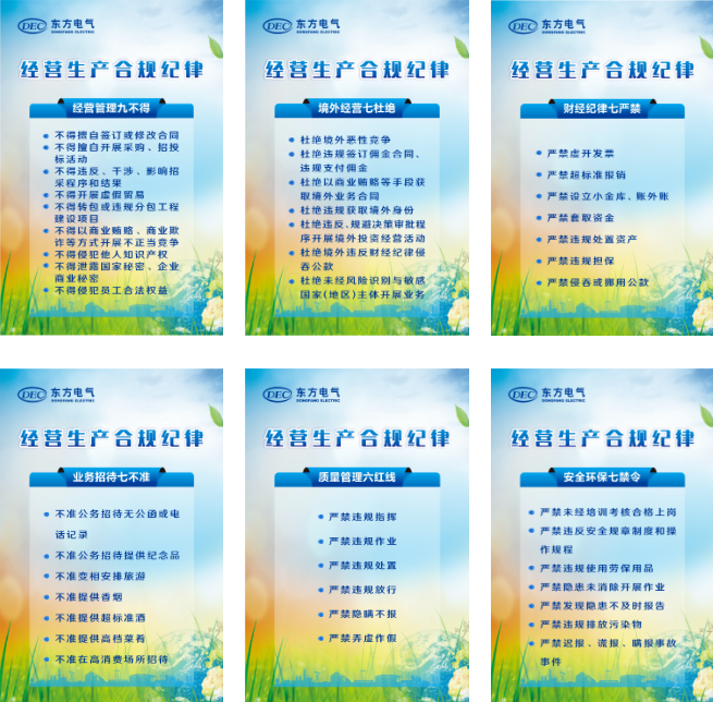 合規(guī)理念是全體東方電氣人必須共同遵循的準(zhǔn)則,也是公司向監(jiān)管機構(gòu)、投資者、社會公眾作出的鄭重承諾,東方電氣集團將始終堅持合規(guī)經(jīng)營,促進穩(wěn)健發(fā)展。