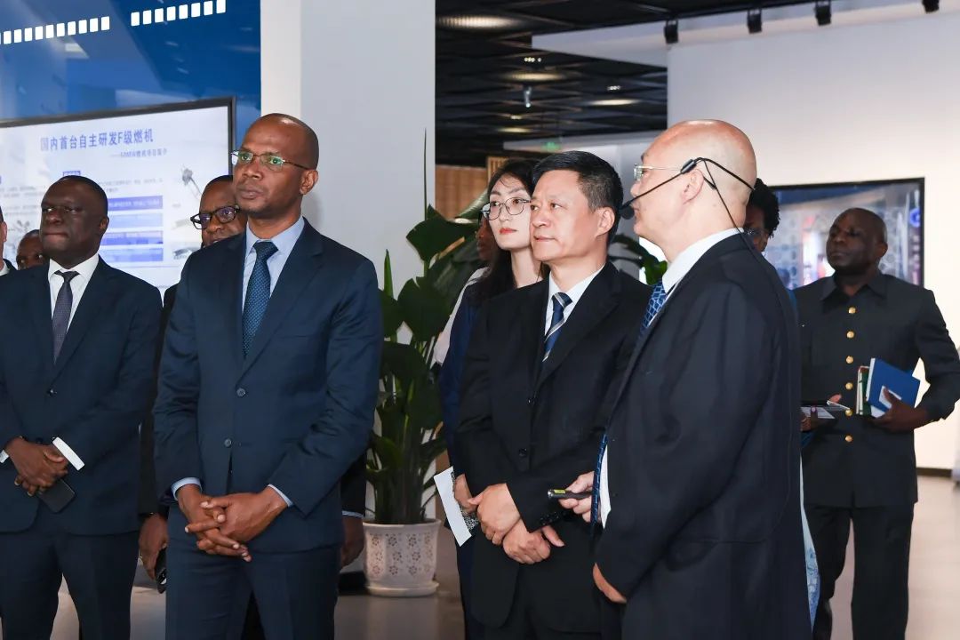 在俞培根的陪同下,馬坎巴一行參觀了東方電氣科技展示廳,重點了解了東方電氣科技創(chuàng)新、產(chǎn)業(yè)發(fā)展、國際業(yè)務(wù)等方面情況。