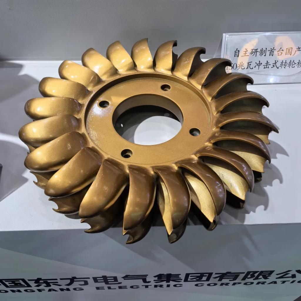 東方電氣自主研制的首臺國產(chǎn)化150兆瓦沖擊式轉(zhuǎn)輪,重約20噸,最大直徑約4米,打破了國外長期壟斷,實現(xiàn)了自主技術(shù)在沖擊式水電領域從“0到1”的突破。