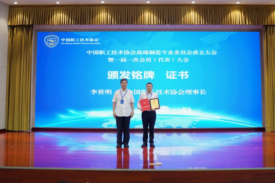 會(huì)上,李世明宣布中國(guó)職工技術(shù)協(xié)會(huì)高端制造專業(yè)委員會(huì)(以下簡(jiǎn)稱“高端制造專委會(huì)”)正式成立,并向高端制造專委會(huì)頒發(fā)匾牌,向高端制造專委會(huì)會(huì)長(zhǎng)、集團(tuán)公司總經(jīng)理助理曾小平頒發(fā)銘牌和證書(shū)。劉偉宣讀關(guān)于高端制造專委會(huì)成立的批復(fù)。