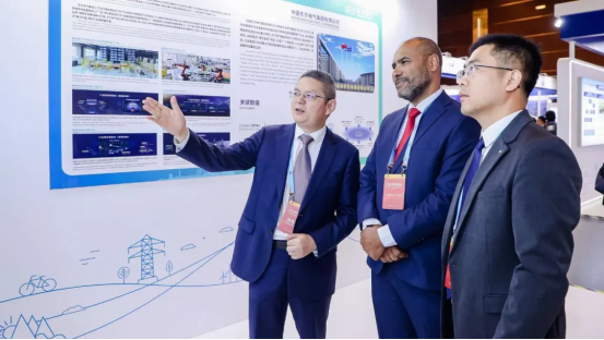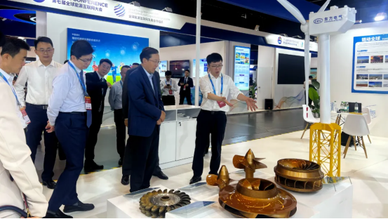 本屆大會(huì),東方電氣集團(tuán)展臺(tái)通過“六電六業(yè)”及“鏈動(dòng)全球”展示模塊,集中呈現(xiàn)了近年來研制的高端清潔能源裝備在構(gòu)建新型能源網(wǎng)絡(luò)中作出的積極貢獻(xiàn)、在全球能源互聯(lián)網(wǎng)領(lǐng)域取得的最新成果。在東方電氣集團(tuán)展臺(tái),自主研制的500兆瓦沖擊式水電轉(zhuǎn)輪、26兆瓦級(jí)海上風(fēng)電機(jī)組等創(chuàng)新產(chǎn)品模型吸引了津巴布韋、多米尼加等國(guó)家眾多專業(yè)觀眾。
